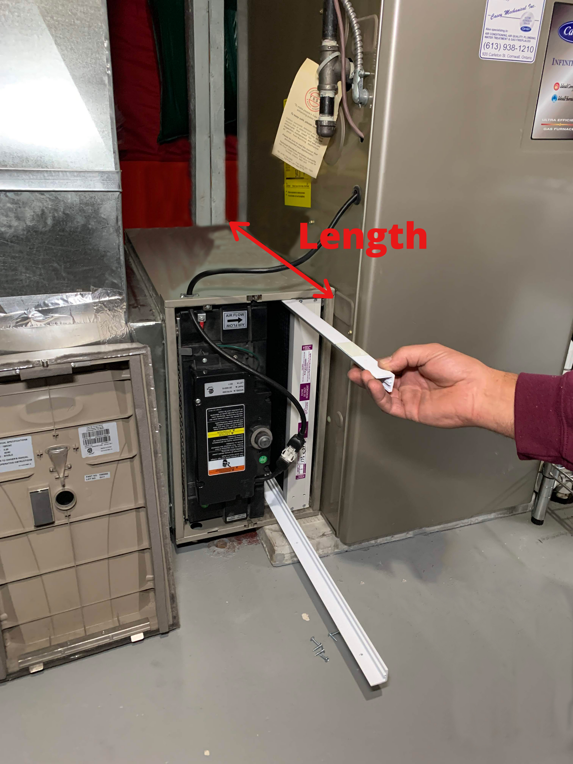 Please enter the length (in inches) of the bottom track of your filter rack. See the image with the red arrow for example.